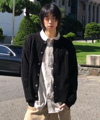 소프트 케이블 라운드 오버핏 가디건_블랙