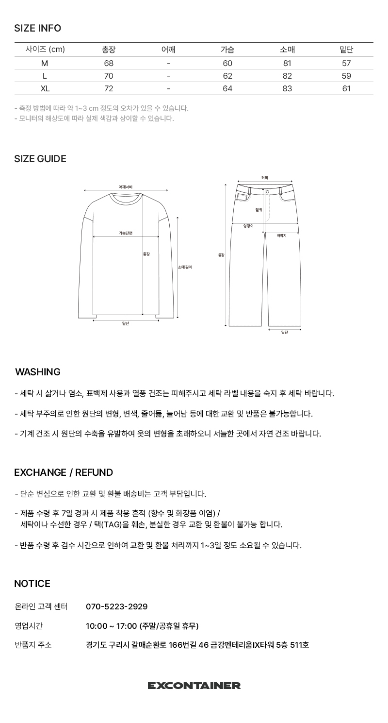 엑스컨테이너(EXCONTAINER)는 ‘excess(과한 것)’에서 벗어나 본질만을 남기는 철학을 바탕으로 합니다. ‘CONTAINER’는 필요한 것만 담는 최소한의 그릇을 의미합니다. 불필요한 요소를 덜어내고 필요한 가치만을 담아내는, 담백하고 본질적인 브랜드입니다.