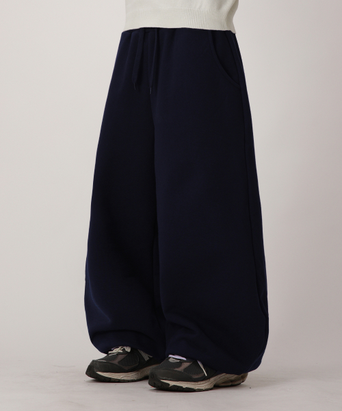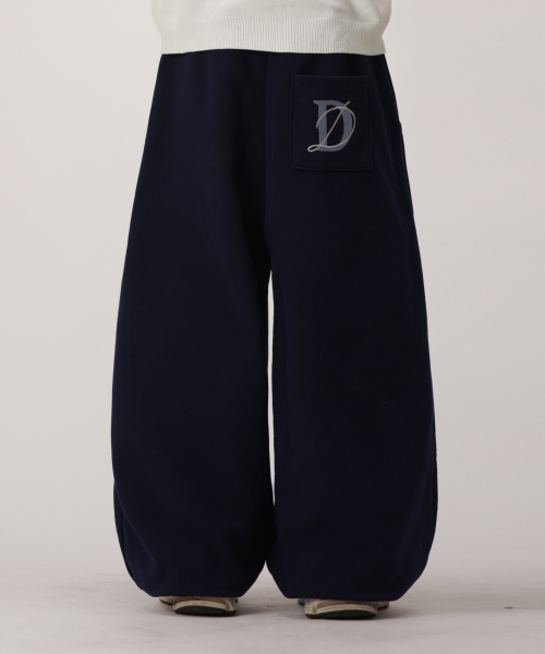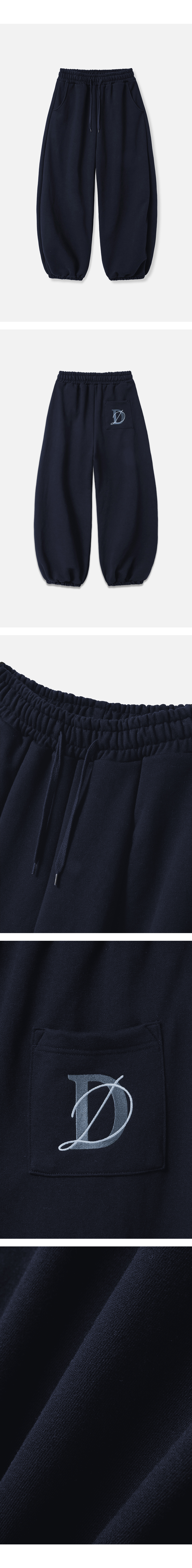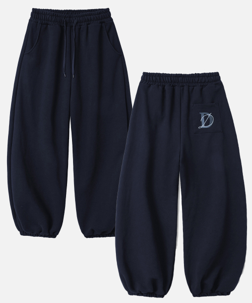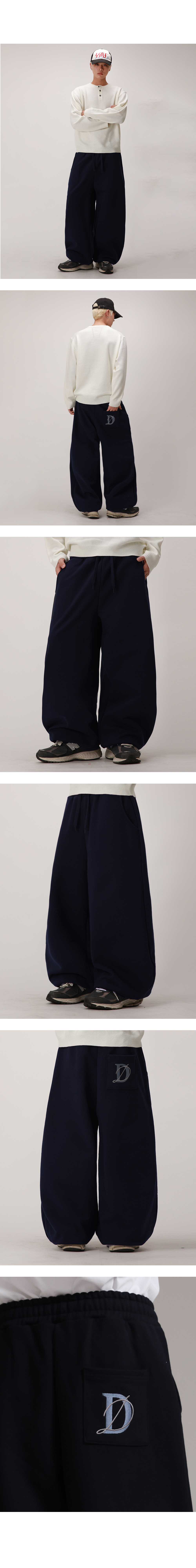 클래식 자수 로고 와이드 조거 팬츠_네이비