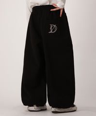 클래식 자수 로고 와이드 조거 팬츠_블랙