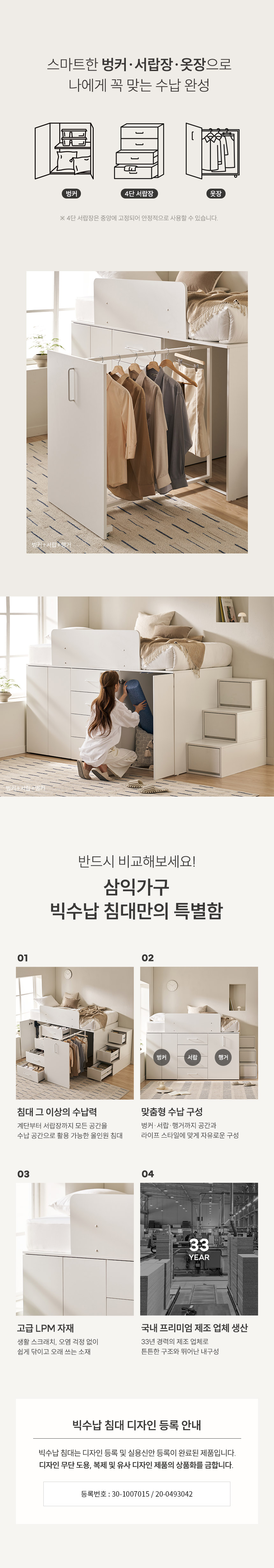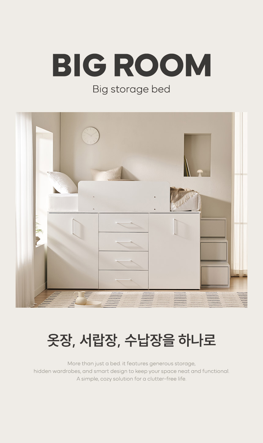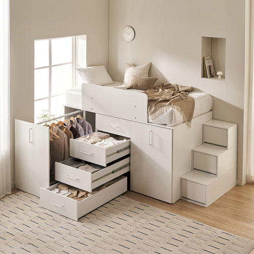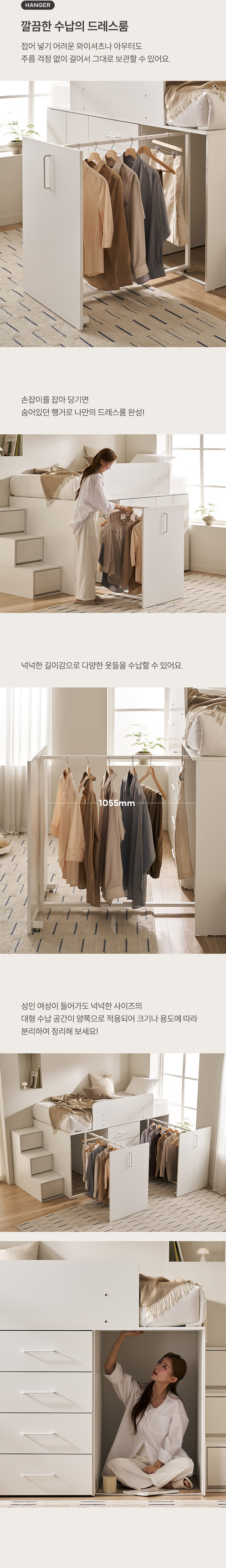 빅룸 빅수납 침대 C타입(행거+서랍+행거)(양모 라텍스7존 독립매트-슈퍼싱글)