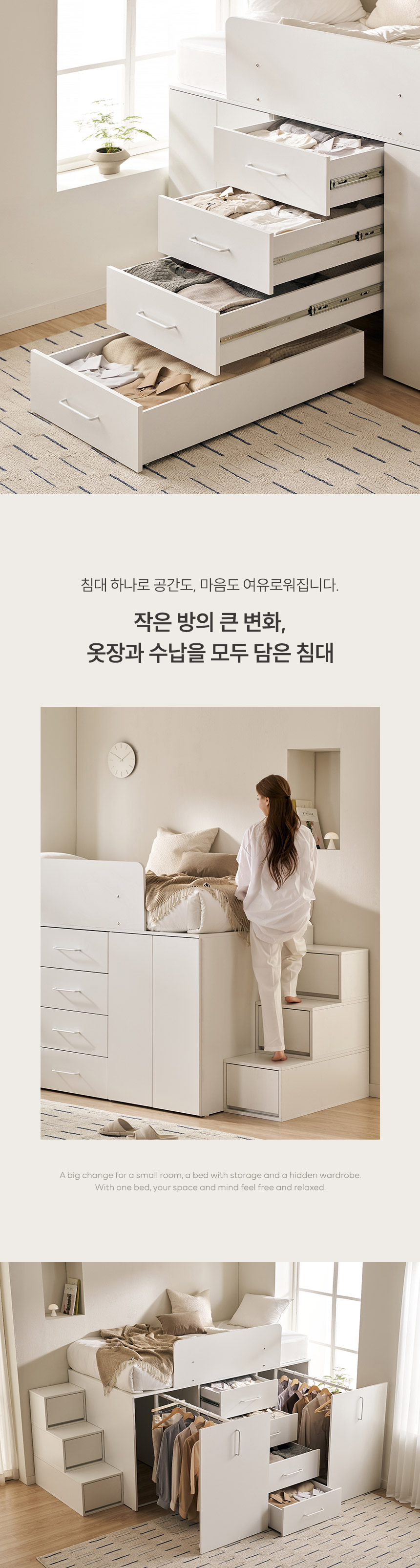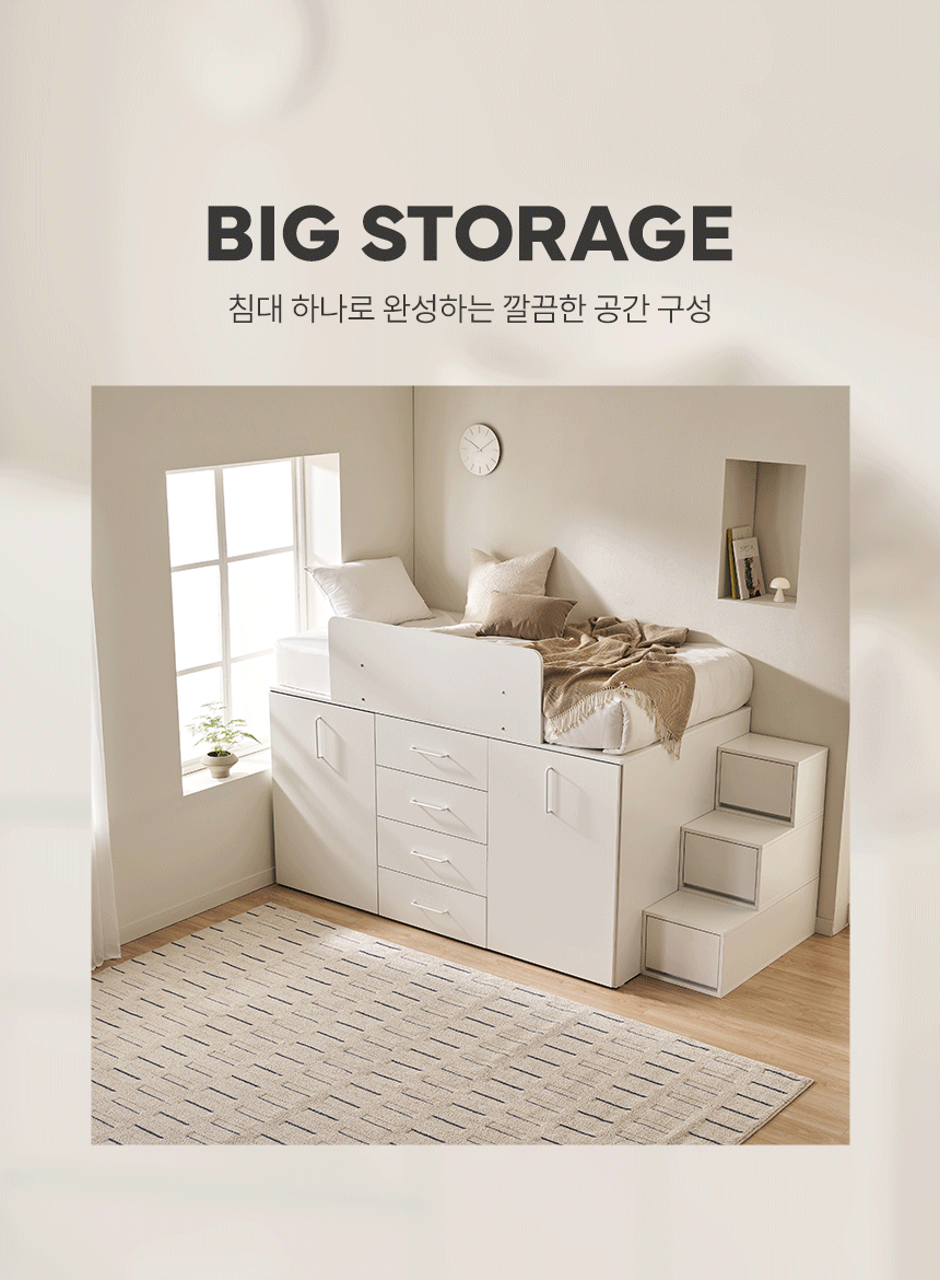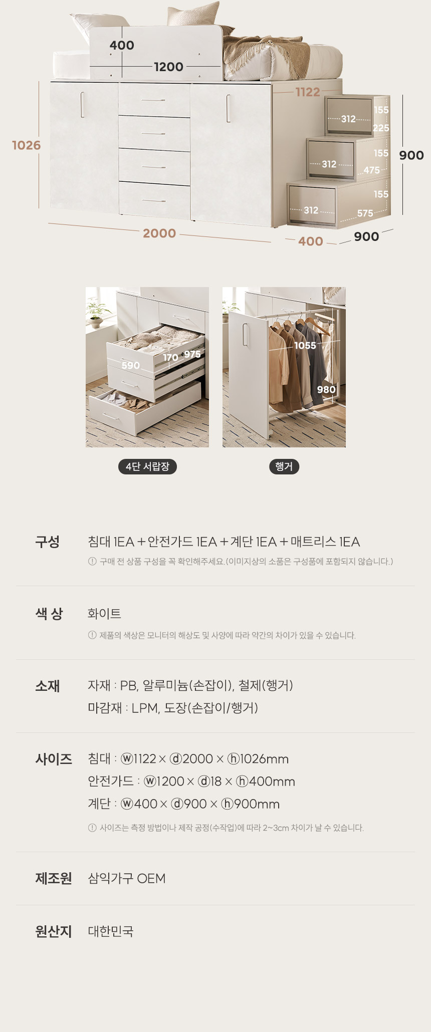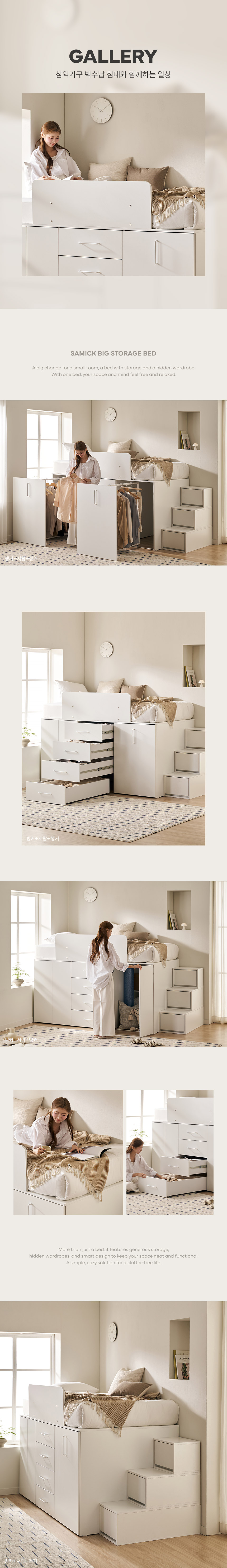 빅룸 빅수납 침대 C타입(행거+서랍+행거)(양모 라텍스7존 독립매트-슈퍼싱글)