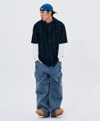 벨티드 절개 밑단 스트링 포인트 카고 워싱 와이드 데님 팬츠 _2COLOR