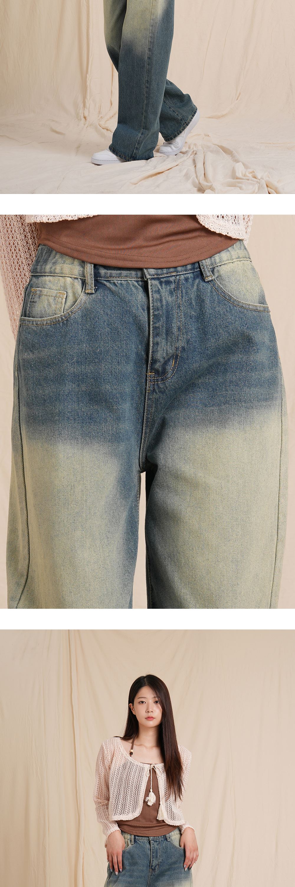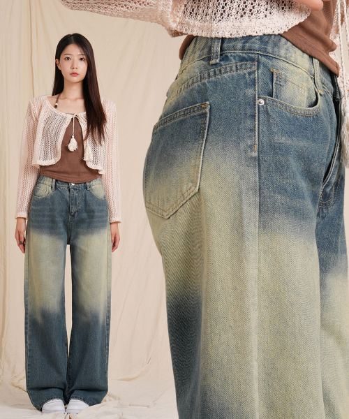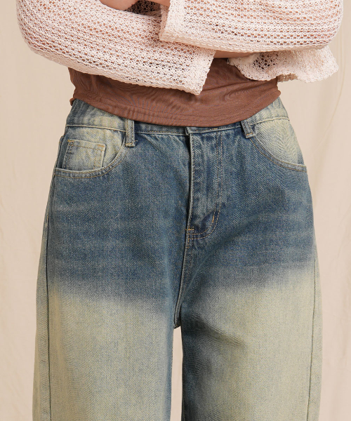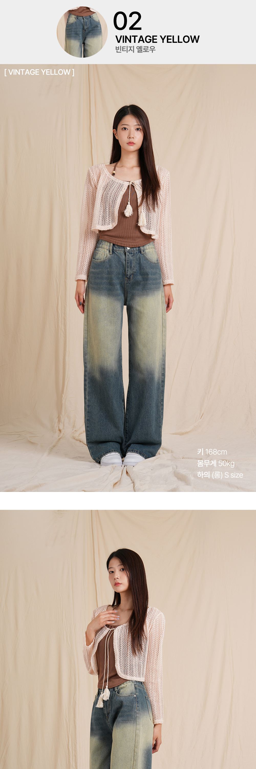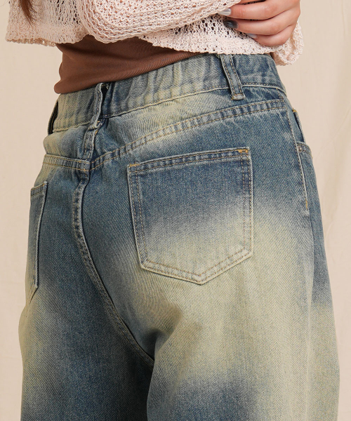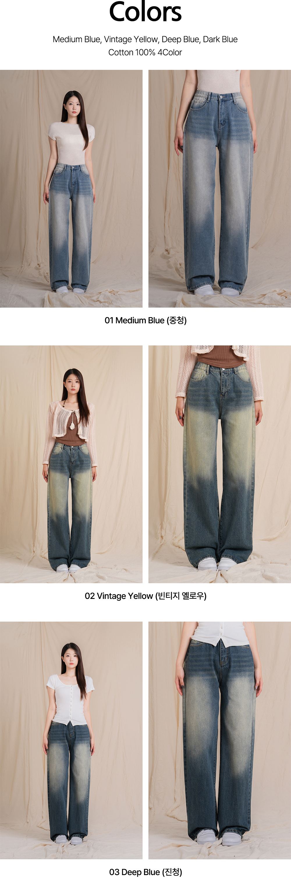 51_2 여성 빈티지 워싱 와이드 반밴딩 데님 팬츠 (숏/기본/롱)_빈티지옐로우
