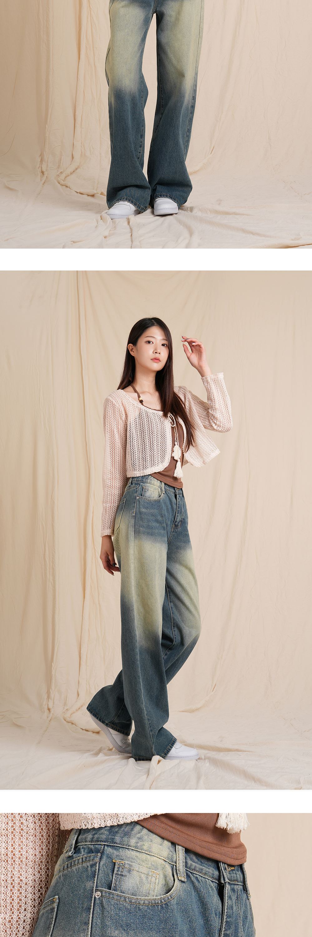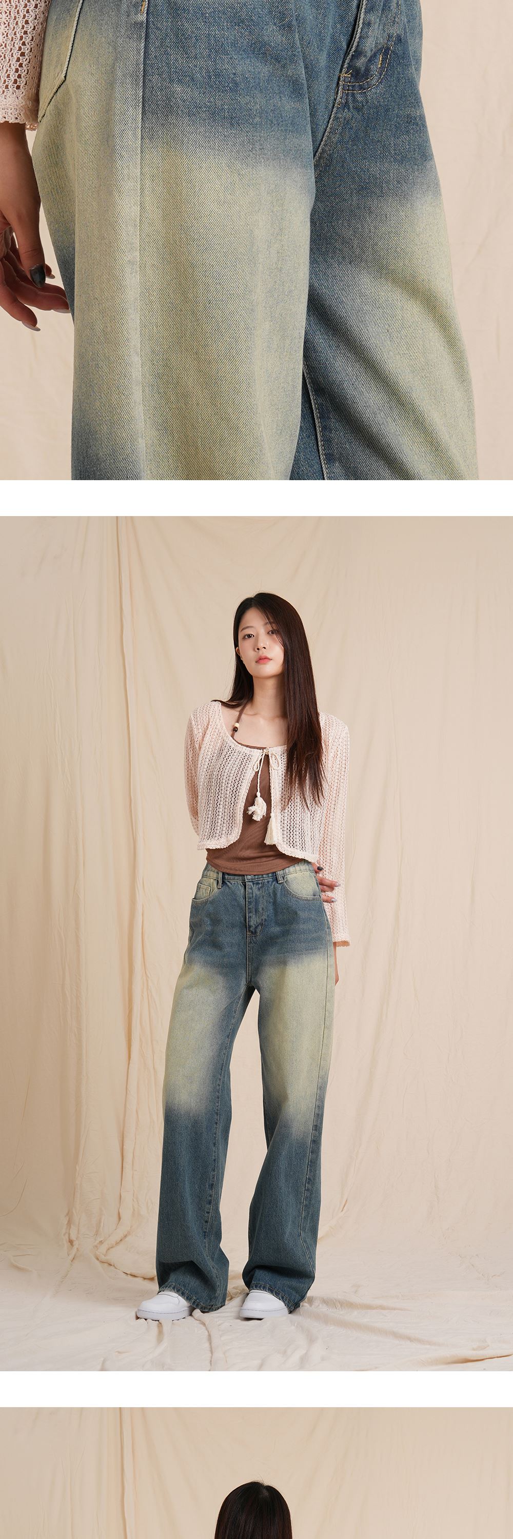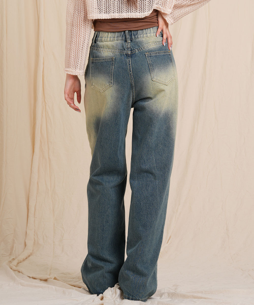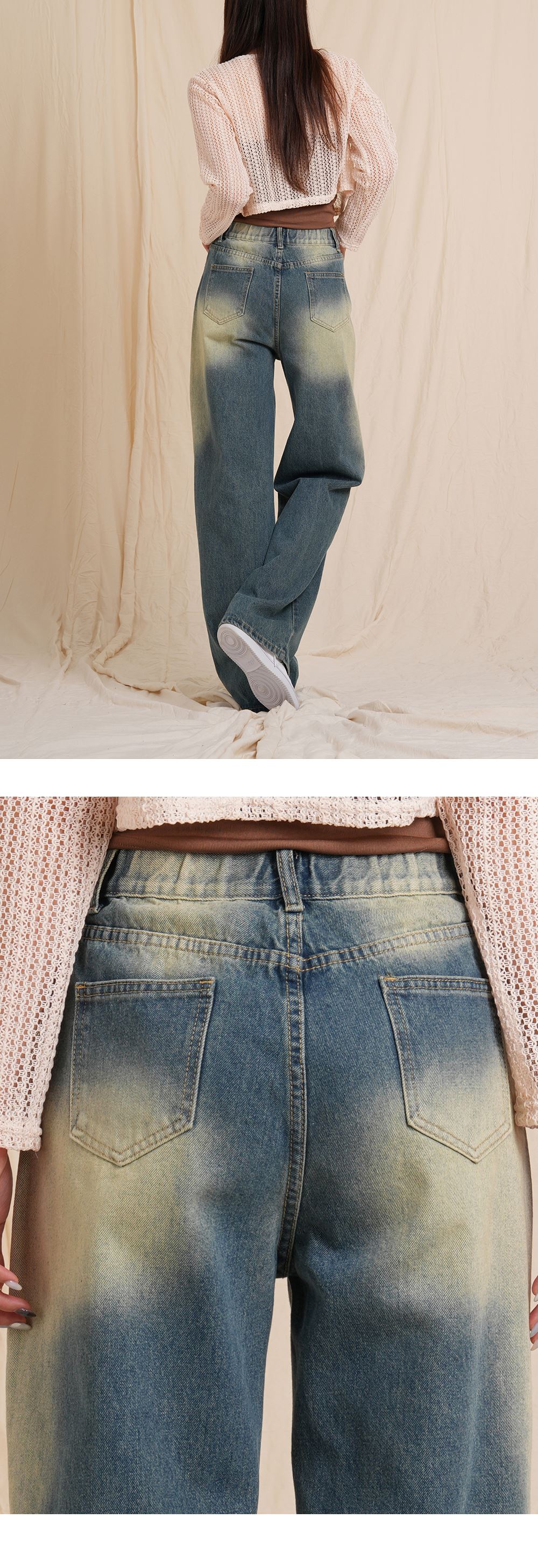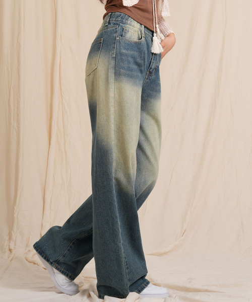 51_2 여성 빈티지 워싱 와이드 반밴딩 데님 팬츠 (숏/기본/롱)_빈티지옐로우