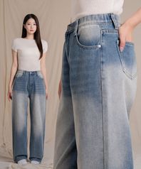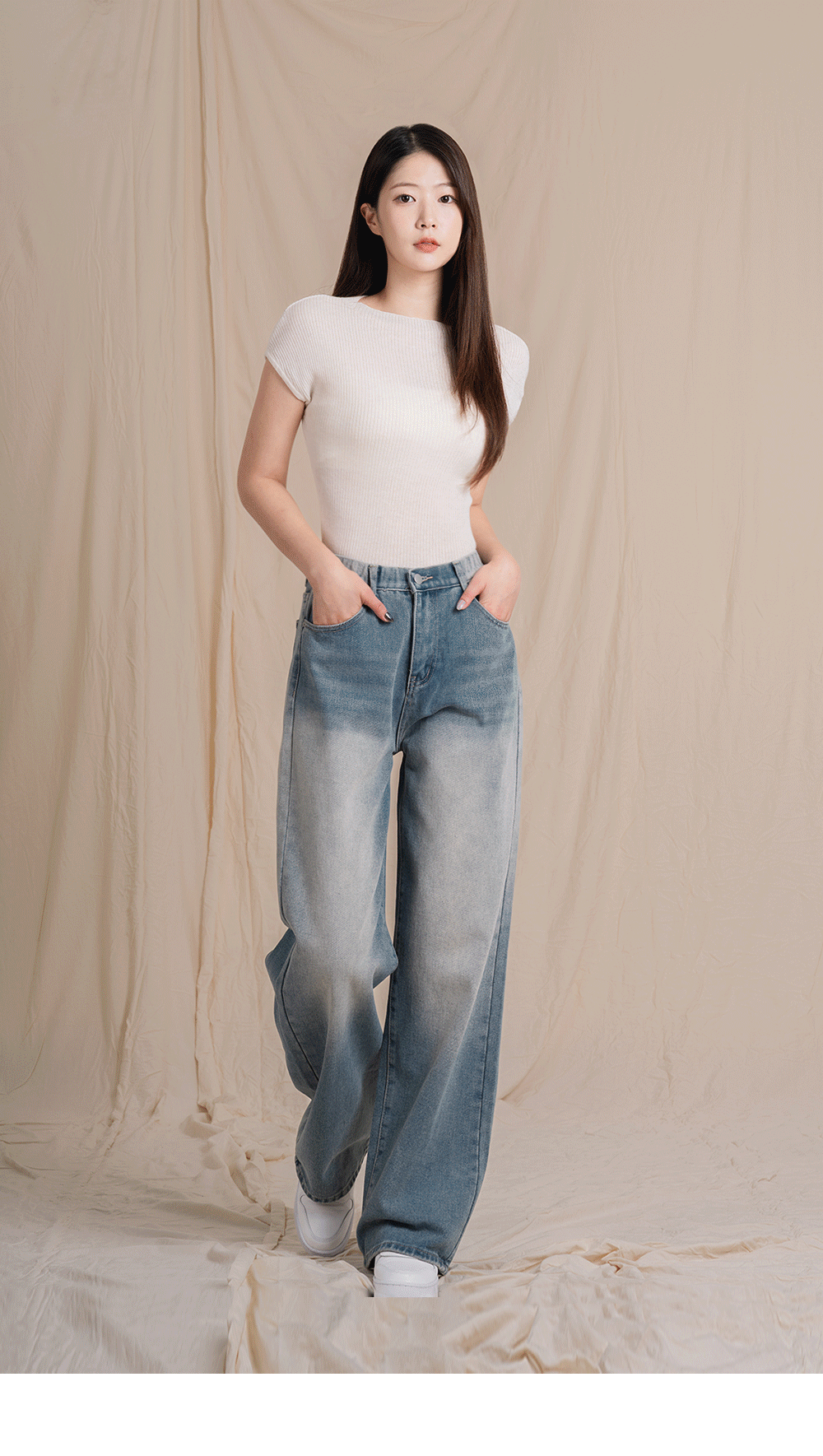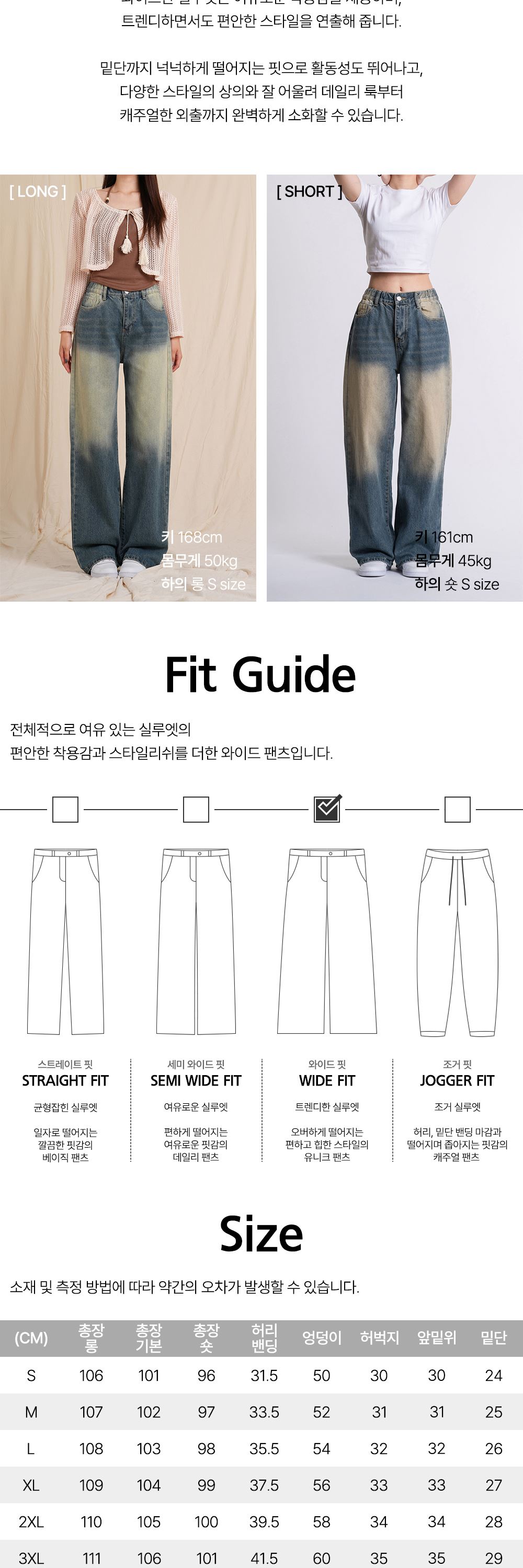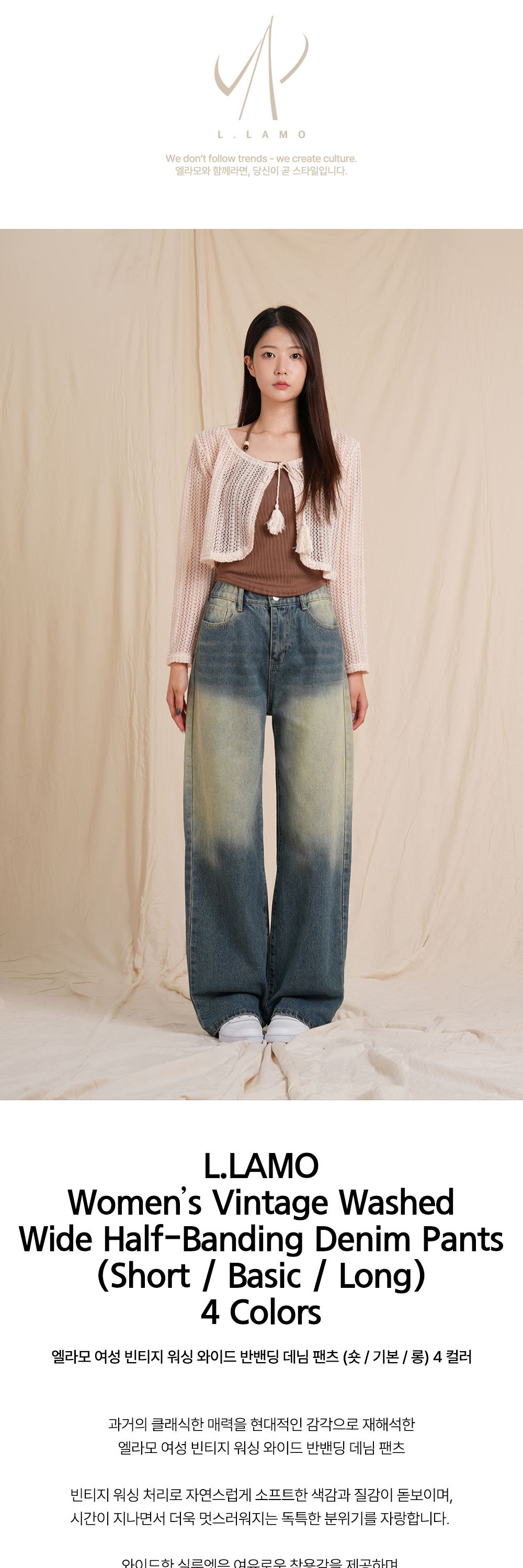 51_1 여성 빈티지 워싱 와이드 반밴딩 데님 팬츠 (숏/기본/롱)_중청