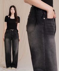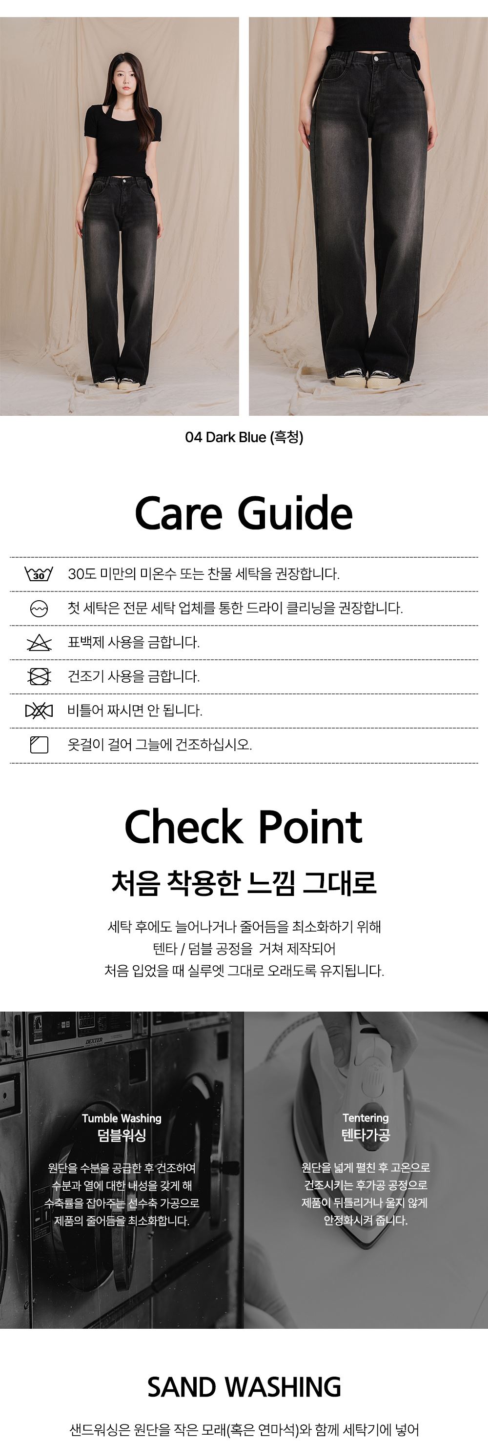 51_4 여성 빈티지 워싱 와이드 반밴딩 데님 팬츠 (숏/기본/롱)_흑청