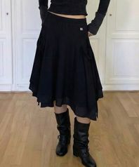 더블 버튼 드레이프 레이어드 미디 언발란스 플레어 스커트 _2COLOR