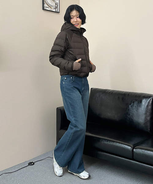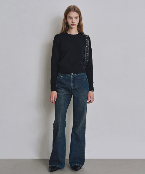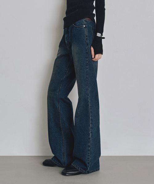 [우먼] 루즈핏 부츠컷 데님 팬츠 다크블루 COWPT002DBLUE