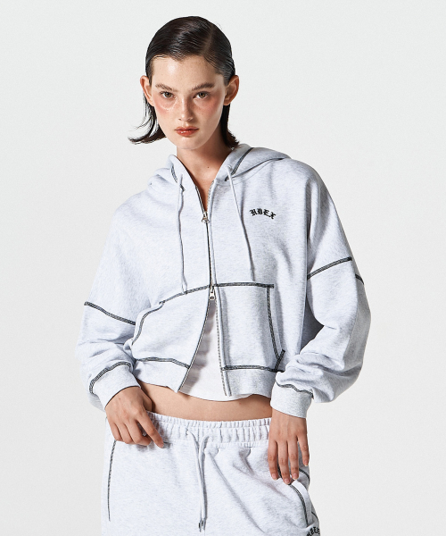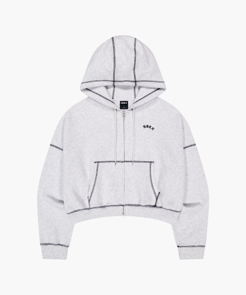 우먼스 컨트라스트 스티치 후디 집업 (Melange White)