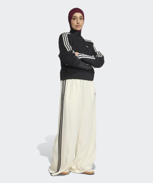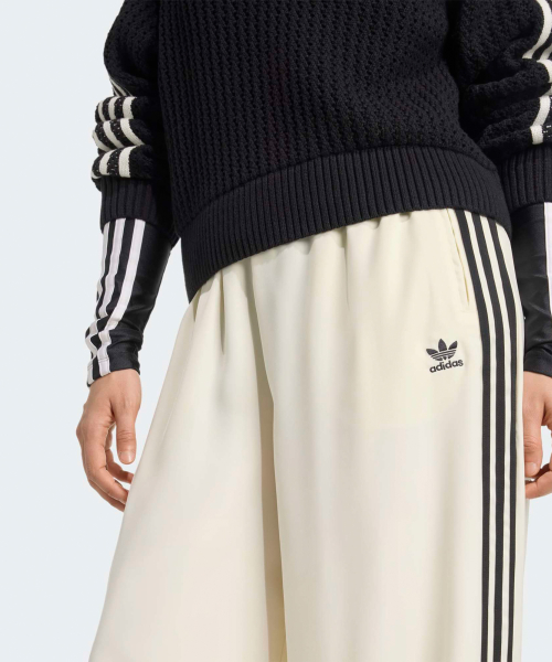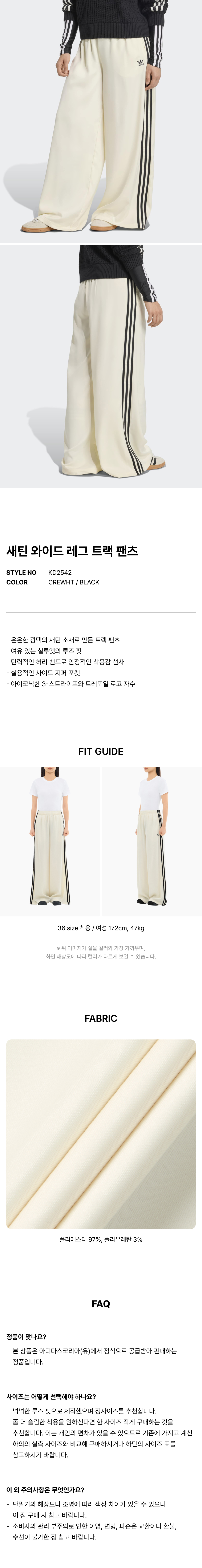 새틴 와이드 레그 트랙 팬츠 - 크림화이트:블랙 / KD2542