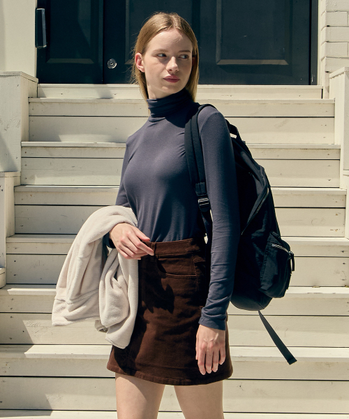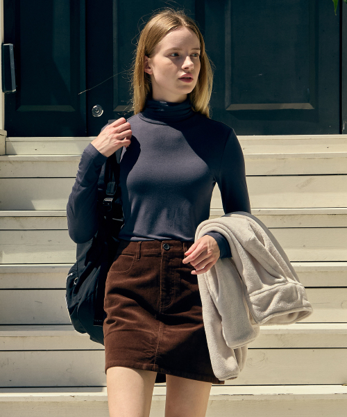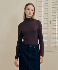 여성 터틀넥 스판 긴팔티셔츠 브라운 LATS0218