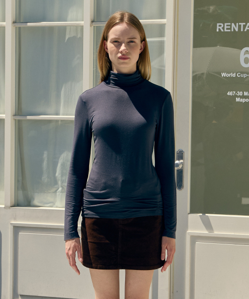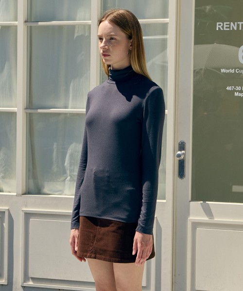 여성 터틀넥 스판 긴팔티셔츠 블루 LATS0218