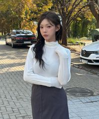 여성 터틀넥 스판 긴팔티셔츠 화이트 LATS0218