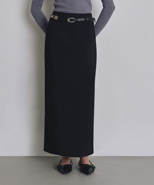 [우먼] 포멀 슬릿 H라인 맥시 스커트 블랙 COWSK002BLACK