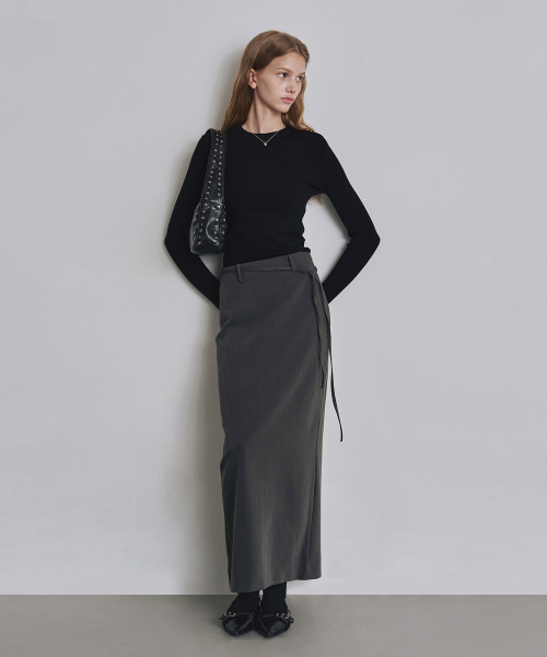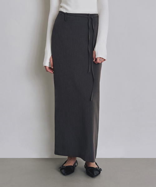 [우먼] 포멀 슬릿 H라인 맥시 스커트 차콜 COWSK002CHARCOAL