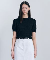 우먼즈 팬시 얀 크루 넥 반팔 니트 [블랙]