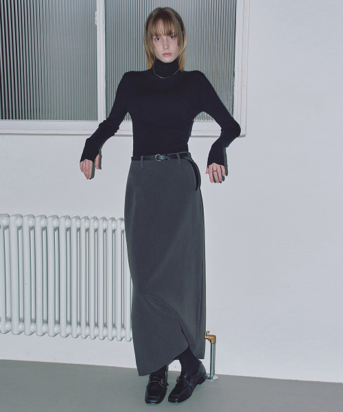 [우먼] 포멀 슬릿 H라인 맥시 스커트 차콜 COWSK002CHARCOAL