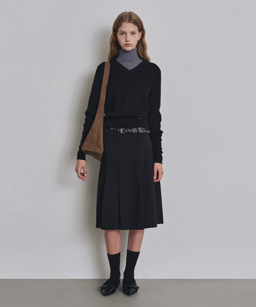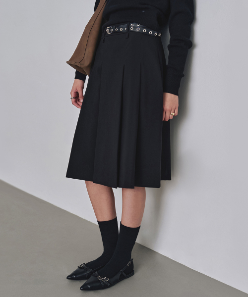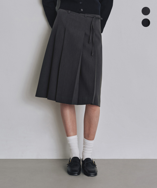 [우먼] 포멀 플리츠 미디 스커트 차콜 COWSK001CHARCOAL