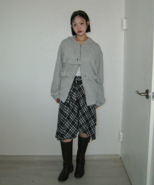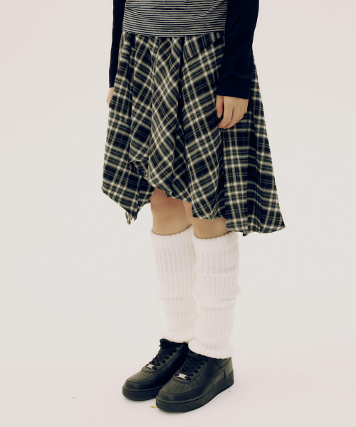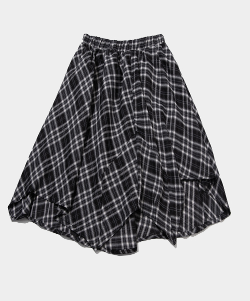 체크 언발란스 랩 밴딩 미디스커트_2COLOR