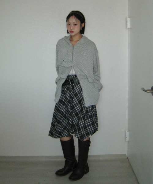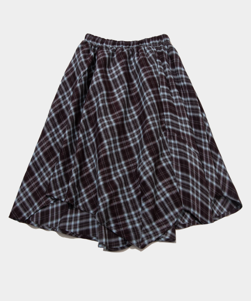 체크 언발란스 타이 업 스트랩 플레어 레이어드 미디 랩 스커트 _ 2COLOR