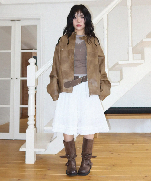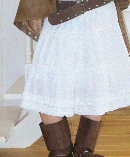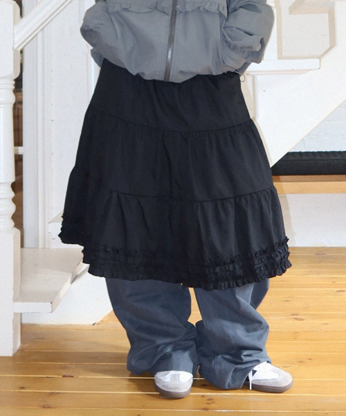 듀얼 프릴 밴딩 플레어 캉캉 미디스커트