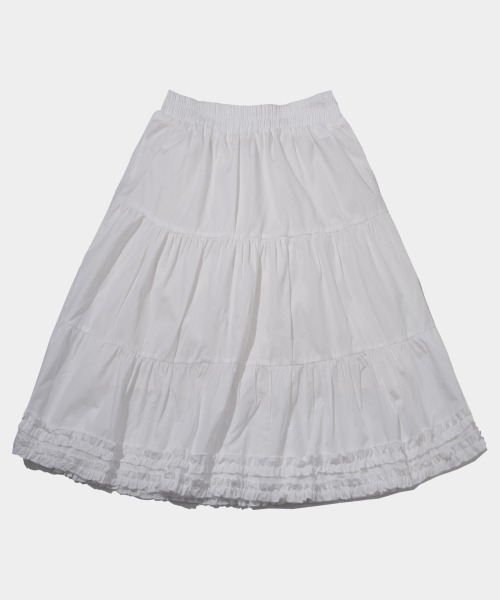 레이스 프릴 밴딩 미디스커트_2COLOR