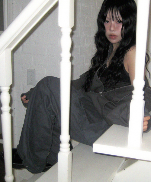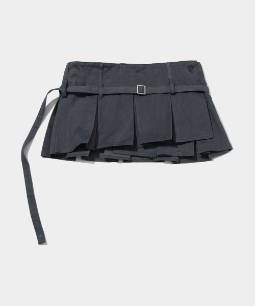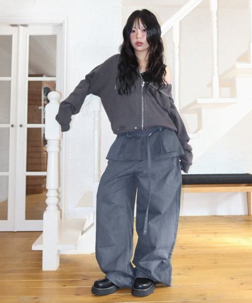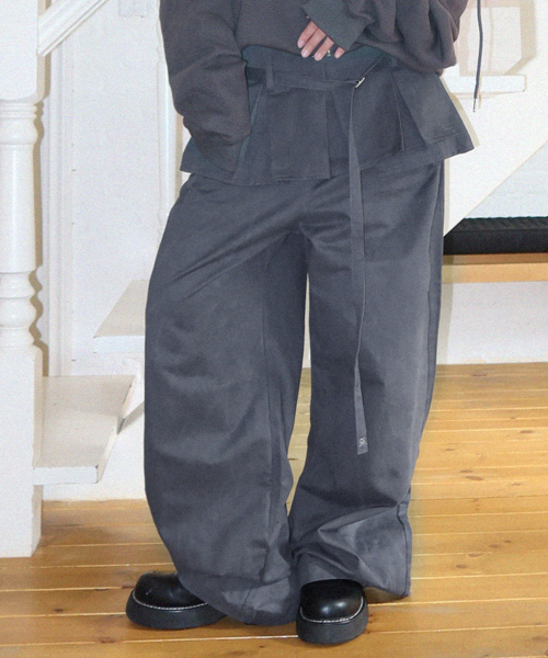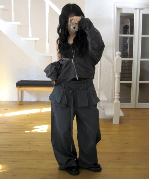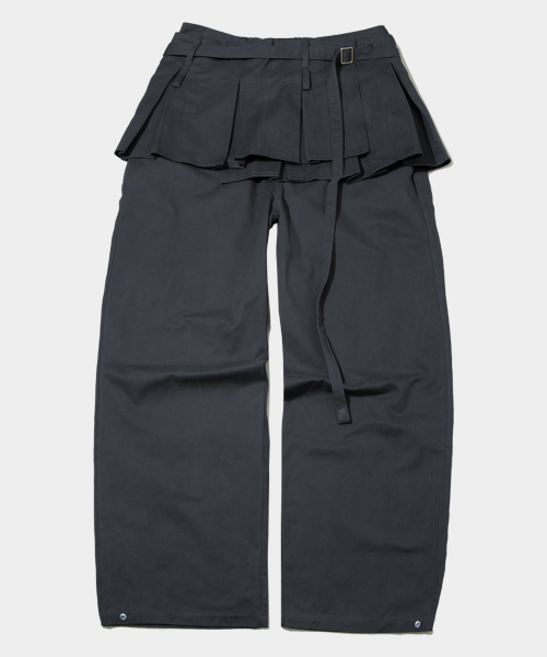 플리츠 스커트 레이어드 와이드 팬츠 [차콜]