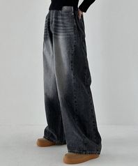 로우 스톤 와이드 데님 팬츠 ( 더스티 그레이 )