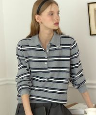 멀티 스트라이프 카라 니트 - 멜란지 그레이