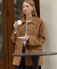 포 스웨이드 버튼 하프 자켓 - 카멜