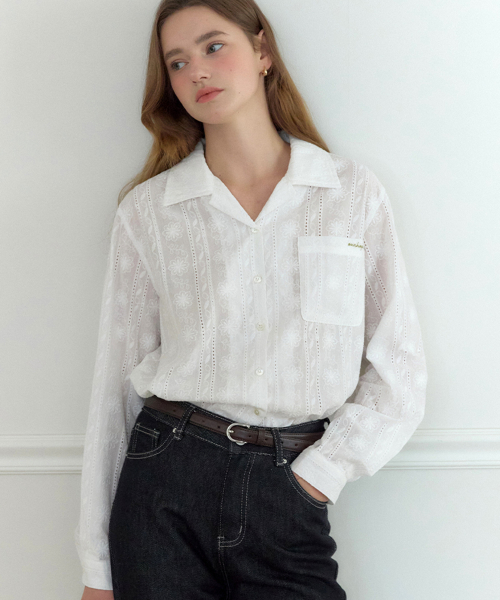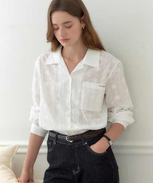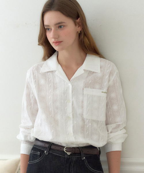 올리브 아뜰리에 플라워 슬리브 셔츠 - 화이트