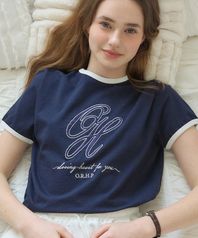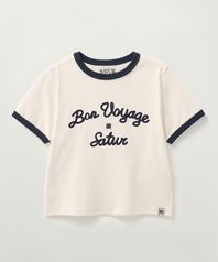 (W) 본 보야지 링거 반팔 티셔츠 크림 네이비