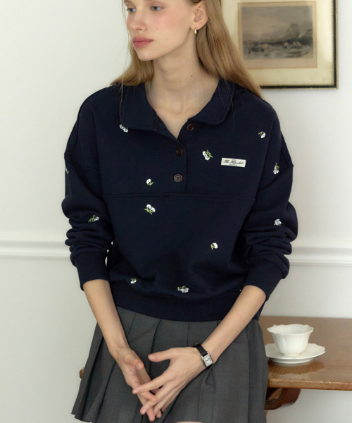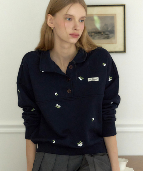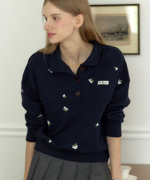 마가렛 엠브로더리 버튼다운 스웨트셔츠 - 네이비