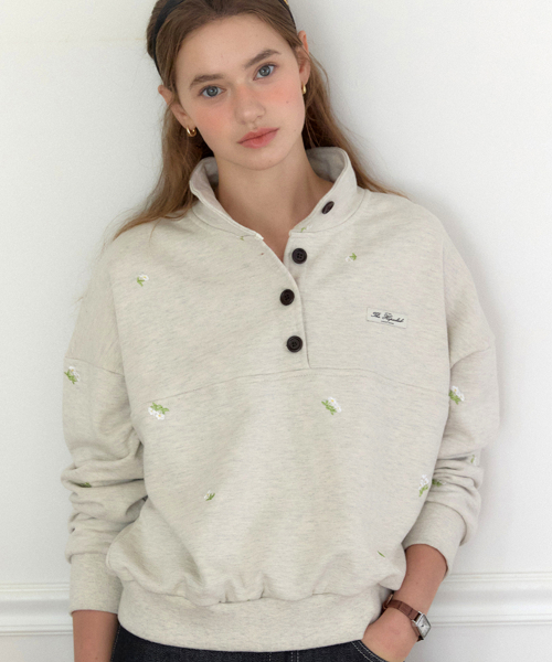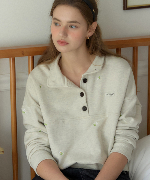 마가렛 엠브로더리 버튼다운 스웨트셔츠 - 오트밀