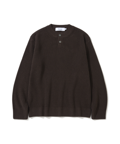 와플 헨리넥 크롭 티셔츠 [브라운]