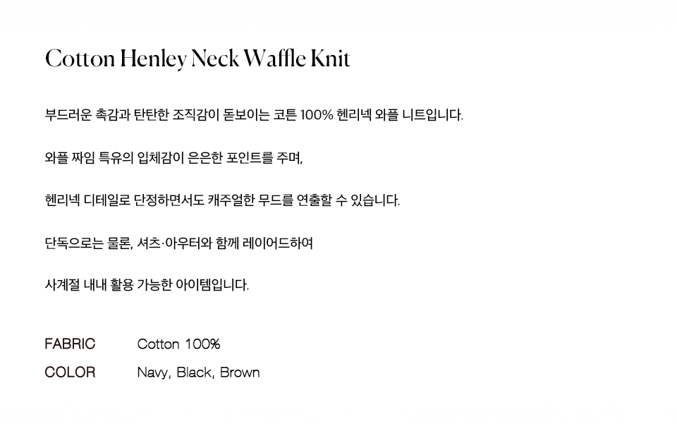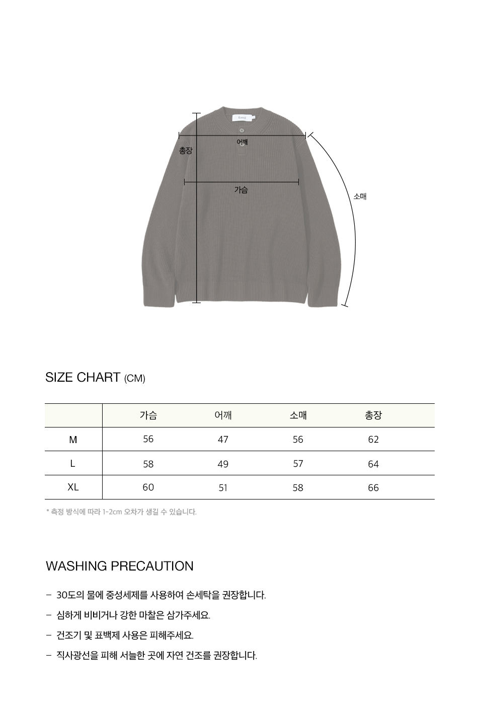 워셔블 코튼 크롭 헨리넥 니트_5color