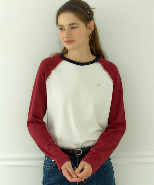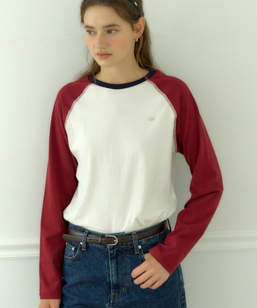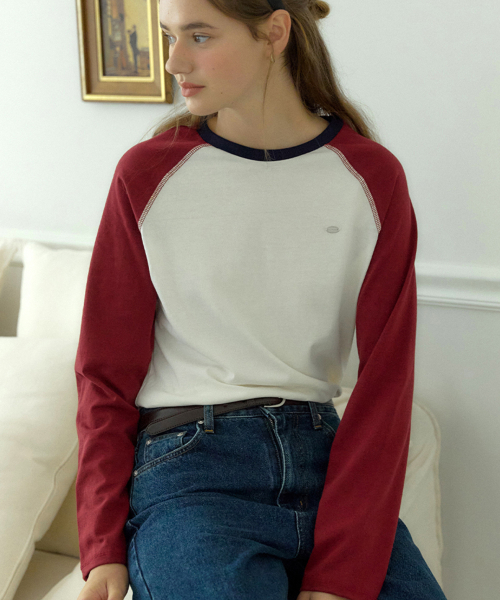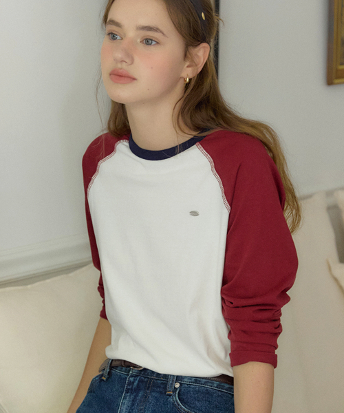 투톤 래글런 티셔츠 - 버건디