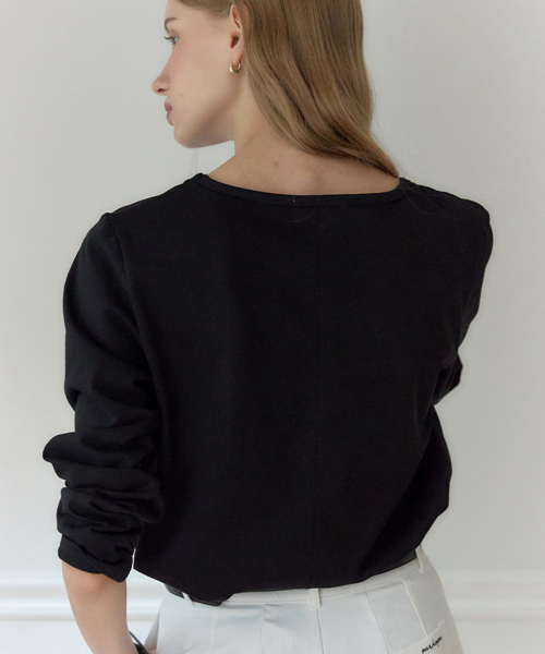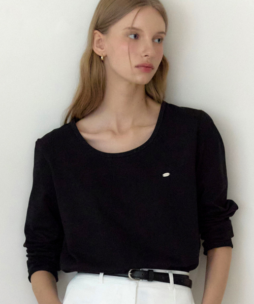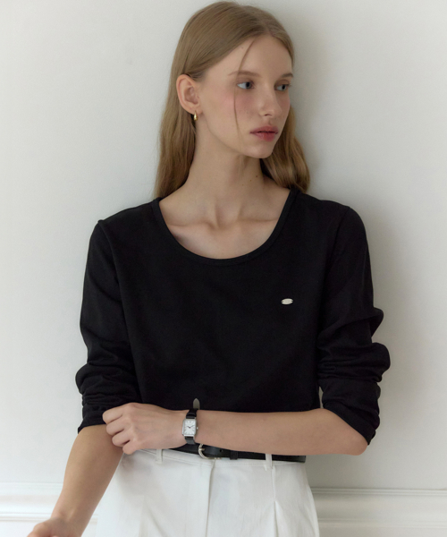 로고 실키 유넥 슬리브 티셔츠 - 블랙