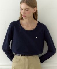 로고 실키 유넥 슬리브 티셔츠 - 네이비