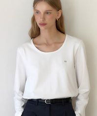 로고 실키 유넥 슬리브 티셔츠 - 화이트