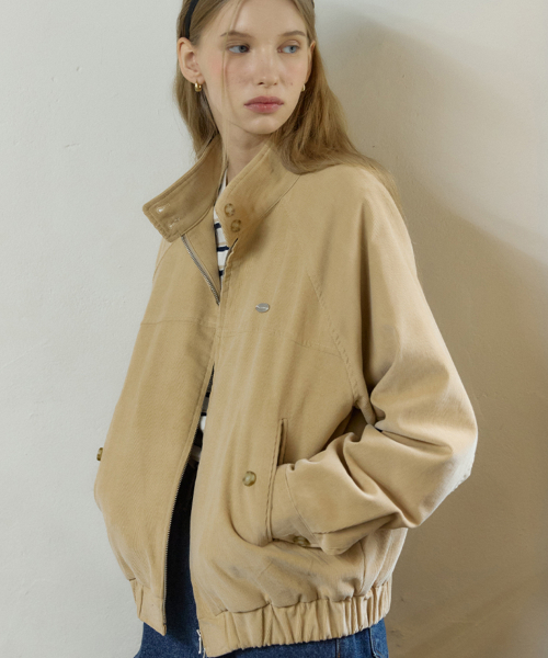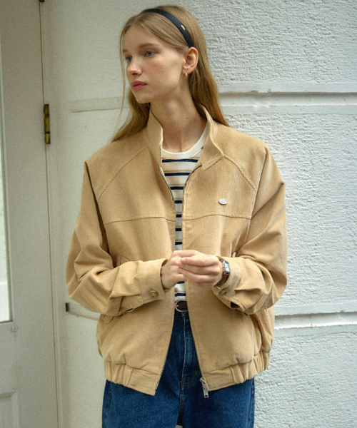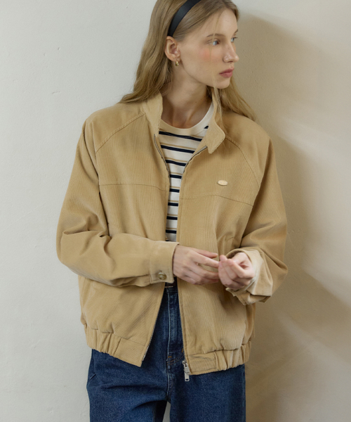 코듀로이 버튼 포인트 블루종 재킷 - 베이지