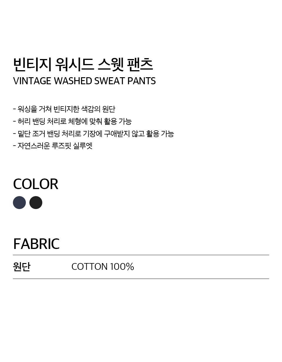 W 빈티지 워시드 스웻 팬츠 (NAVY)