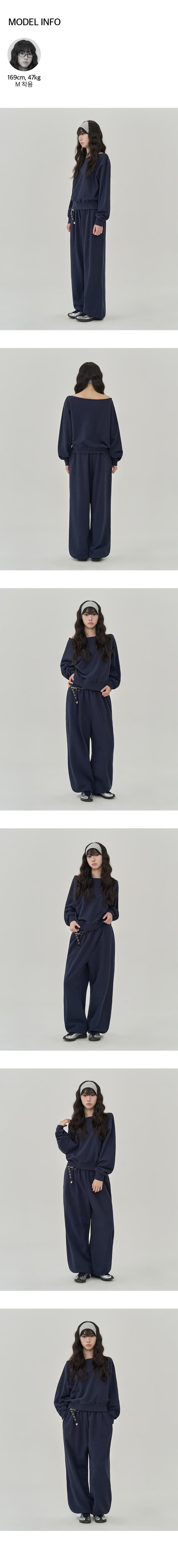 W 빈티지 오프숄더 스웻 셔츠 (NAVY)