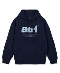 ATRL 도트 레터링 오버핏 와이드 숄더 후디_네이비