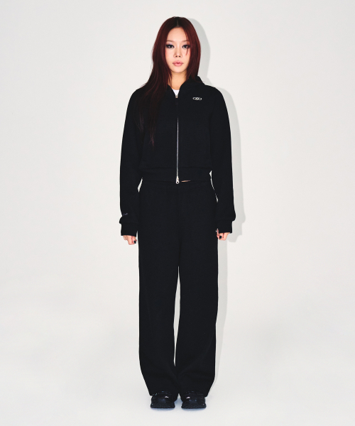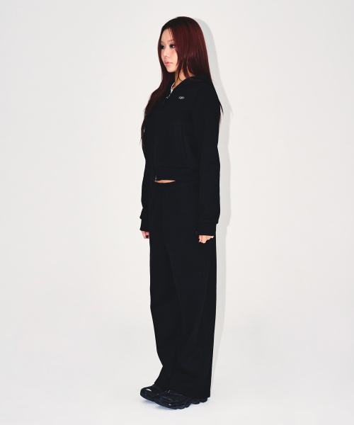* W 니트 라이크 세미 크롭 후디 집업