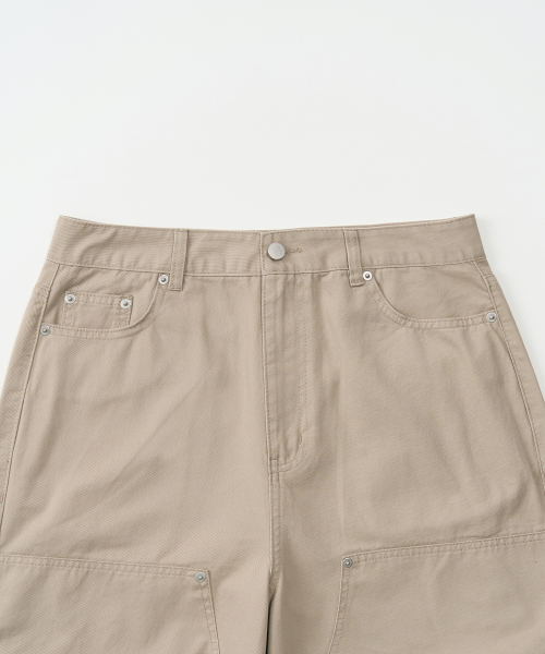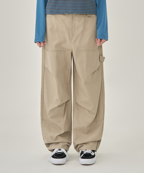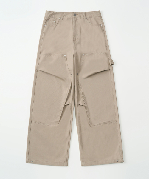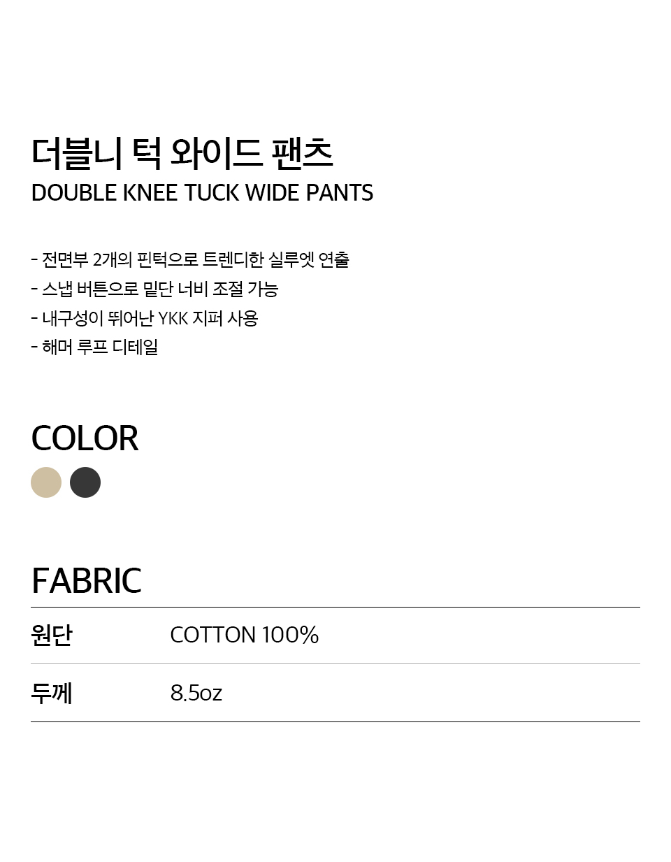 W 더블니 턱 와이드 팬츠 (BEIGE)