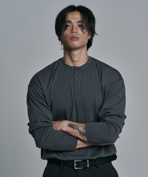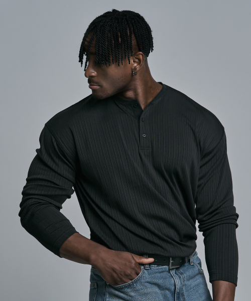 립브드 머슬핏 헨리넥 롱 슬리브_5color
