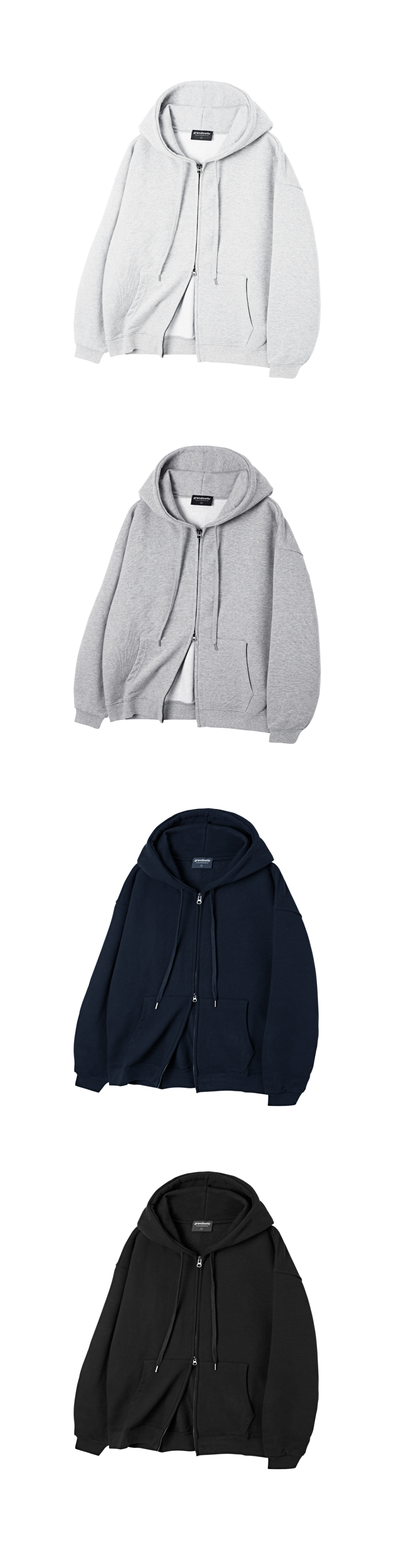 투웨이 빅 오버핏 스웨트 후드 집업 (네이비)