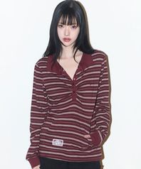 오픈 카라 롱슬리브 버건디